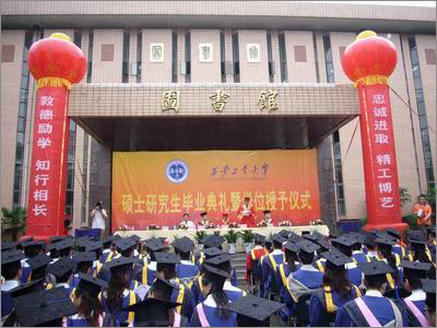 5月31日,我校2007屆碩士研究生畢業(yè)典禮在金花校區(qū)圖書館前隆重舉行。參加典禮的有校黨委書記賽云秀、校長(zhǎng)劉江南、副書記簡(jiǎn)林根、副校長(zhǎng)張君安、劉衛(wèi)國(guó)、校長(zhǎng)助理陳樺以及部分導(dǎo)師和全體研究生。典禮由校長(zhǎng)助理研究生部主任陳樺教授主持。首先,劉衛(wèi)國(guó)副校長(zhǎng)代表學(xué)校學(xué)位委員會(huì)宣讀了2007屆授予碩士學(xué)位研究生名單,接著由劉江南校長(zhǎng)、劉衛(wèi)國(guó)副校長(zhǎng)共同為畢業(yè)研究生們頒發(fā)了學(xué)位證書。今年,我校共有188名同學(xué)順利的通過了論文答辯,獲得了碩士學(xué)位。經(jīng)過校學(xué)位委員會(huì)的評(píng)審,產(chǎn)生優(yōu)秀碩士論文21篇。張君安副校長(zhǎng)宣讀了優(yōu)秀碩士論文名單。校領(lǐng)導(dǎo)共同為優(yōu)秀碩士論文獲得者頒發(fā)了榮譽(yù)證書。隨后導(dǎo)師代表容曉峰副教授、學(xué)生家長(zhǎng)代表郭安江、畢業(yè)生代表?xiàng)盍嵬瑢W(xué)分別做了精彩的發(fā)言。最后,校長(zhǎng)劉江南教授進(jìn)行了總結(jié)發(fā)言,他對(duì)同學(xué)們過去三年的表現(xiàn)以及取得的成績(jī)給予了充分的肯定,并給即將畢業(yè)的研究生提出了新的要求和期望。