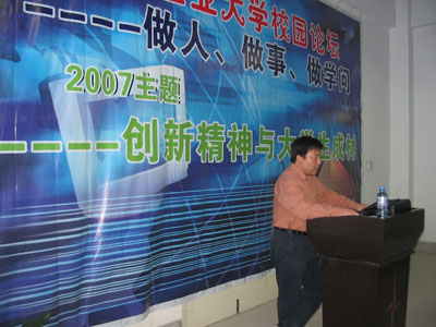5月17日晚7:30,在西安工業大學未央校區舉行了未央大講堂系列講座之——大學生創業問題探討。本次講座由國際交流與對外合作處(校友總會)、校團委主辦,電信學院承辦。特別邀請我校78級校友、曾經長期擔任我校教學工作、現任西安全星智能電子有限責任公司董事長王林祥老師主講。王林祥也是第一個在我校設立企業獎學金的業界人士。