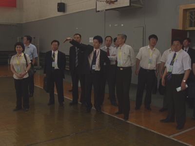 5月14日下午14點30分,教育部評估專家組一行在校黨委書記賽云秀、校長劉江南、副校長張君安、劉衛國、校長助理陳樺等學校領導的陪同下考察了我校金花校區體育場館設施狀況。體育系主任谷崎、副主任陳亞麟向評估組專家就體育場館設施的功能和利用情況作了詳細的介紹。