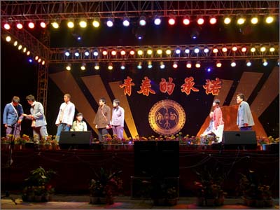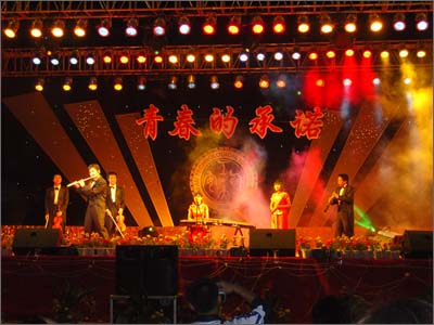 繽紛的燈光變幻出流動的彩虹,一張張笑臉展現出青春的絢麗,學子們用最美的歌聲和舞姿向西工的未來致意。動人的旋律,奔涌著幾代西工人團結奮斗的豪情壯志;歡快的舞步,飛揚著所有西工人共同發展的美好憧憬。5月11日晚,“青春的承諾——西安工業大學‘五四’科技文化藝術節文藝晚會”在未央校區經緯廣場隆重舉行。校領導簡林根、丁養斌、張君安、陳俊斌、徐雪芹等與我校一萬多名師生一同觀看了晚會。