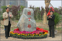 黨委副書記簡林根和工會主席徐雪芹共同為園丁林揭碑。儀式結束后,教職工和學校領導在“園丁林”石碑前合影留念。