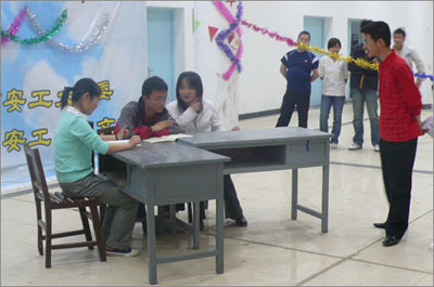 此次比賽形式靈活多樣,采取自選題和即興話劇表演相結(jié)合的方式進(jìn)行,除此之外,又穿插了自愿的文藝表演與字謎搶答節(jié)目。當(dāng)晚分別上演了來自光電學(xué)院大一參賽隊(duì)的《考試》、機(jī)電學(xué)院大一參賽隊(duì)的《魯提轄拳打鎮(zhèn)關(guān)西》、數(shù)理系大一參賽隊(duì)的《小崔說事》以及電信學(xué)院大一參賽隊(duì)的《手機(jī)的故事》,特別是電信學(xué)院大一新生的精彩演技贏得了臺(tái)下觀眾的陣陣掌聲。比賽現(xiàn)場(chǎng)氣氛熱烈,最終電信學(xué)院參賽隊(duì)順利通過預(yù)賽角逐。