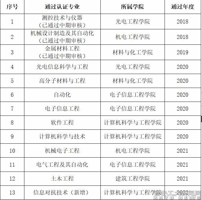 (本網訊)近日,中國工程教育專業認證協會發布了《關于公布西南石油大學機械工程等422個專業認證結論的通知》和《關于公布北京工業大學機械工程等460個專業工程教育認證中期審核結論的通知》,我校信息對抗技術專業順利通過認證,金屬材料工程專業通過有效期內中期審核。