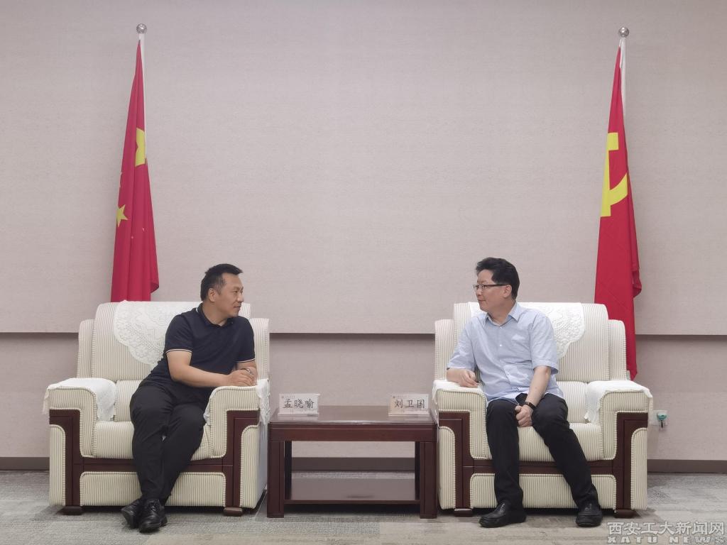 劉衛國對孟曉喻一行的到來表示熱烈歡迎,并介紹了學校的學科特色、辦學成績和發展方向等基本情況。同時,衷心感謝省委軍民融合辦對西安工業大學的關心和支持。