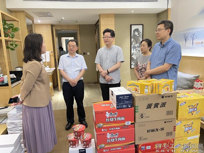 (本網訊)7月14日,校黨委書記劉衛國、校長趙祥模、副校長張群來到招生錄取工作現場,看望慰問了招生一線工作人員,并送去了慰問品,校工會主席姚穎陪同。