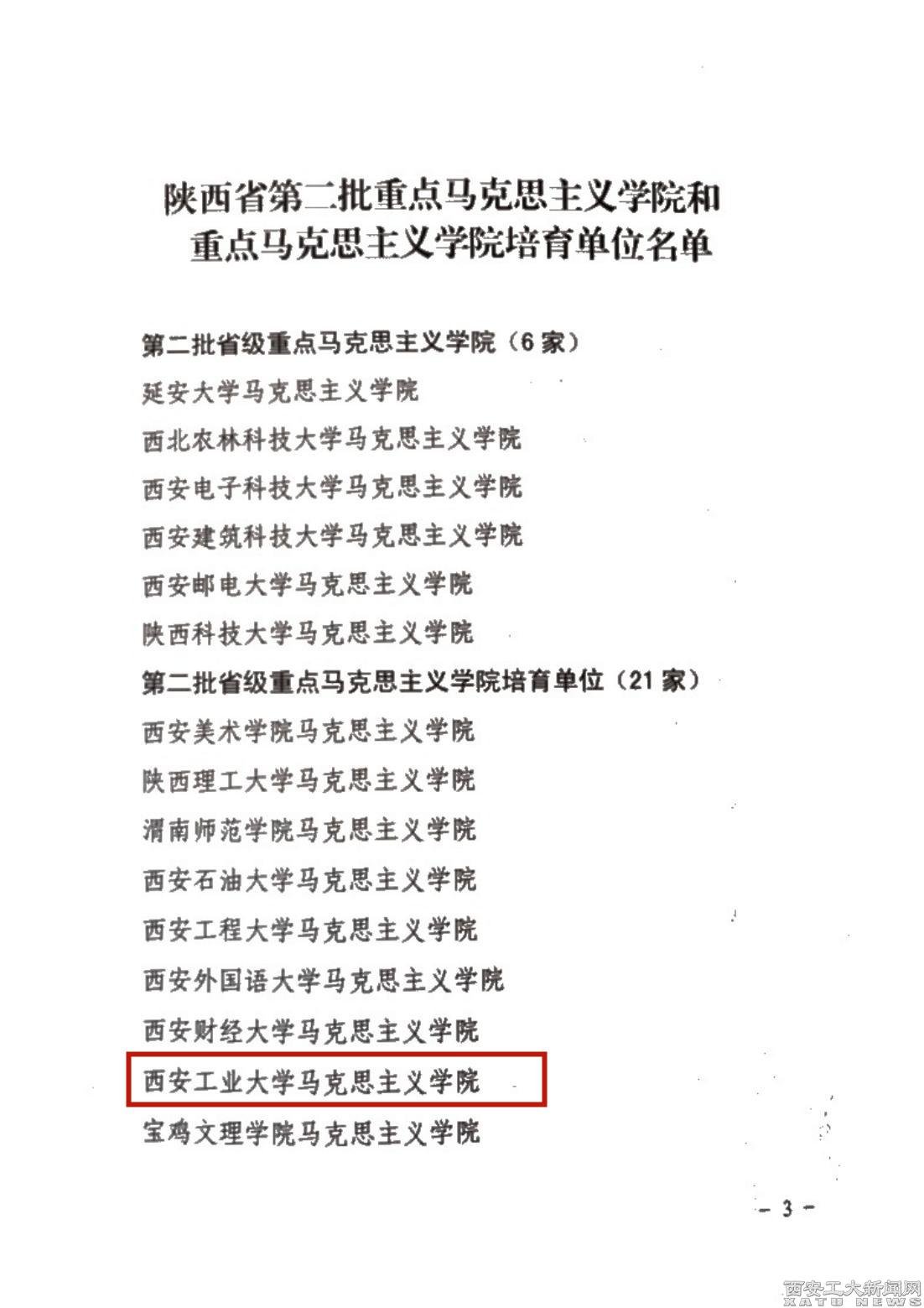 (本網訊)近日,中共陜西省委宣傳部、中共陜西省委教育工委發布《關于印發陜西省第二批重點馬克思主義學院和重點馬克思主義學院培育名單的通知》(陜宣字[2022]143號),西安工業大學馬克思主義學院被確定為陜西省第二批重點馬克思主義學院培育單位。