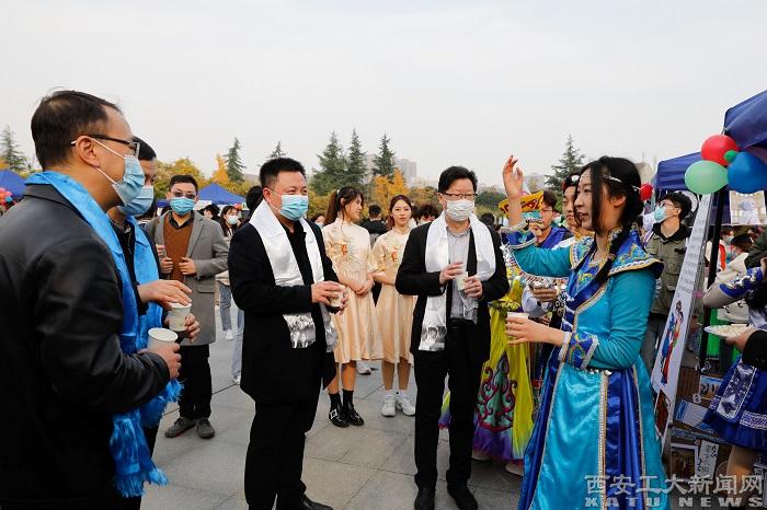 校黨委書記劉衛國,校黨委副書記兼黨委統戰部部長梁云鶴,校黨委副書記、紀委書記、駐校監察專員王發合,校黨委副書記馬福出席民族文化節開放日活動。