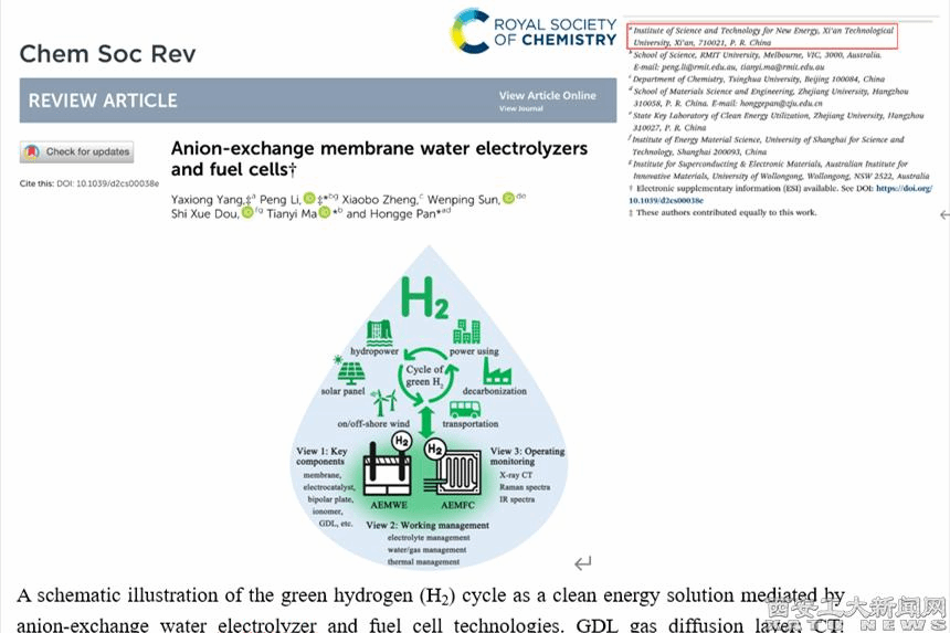(本網(wǎng)訊)近日,我校新能源科學(xué)與技術(shù)研究院與墨爾本皇家理工大學(xué)合作,在國際頂級期刊《CHEMICAL SOCIETY REVIEWS》(IF=60.615)以《Anion-exchange membrane water electrolyzers and fuel cells》為題,發(fā)表了陰離子交換膜水電解槽和燃料電池的超長綜述。