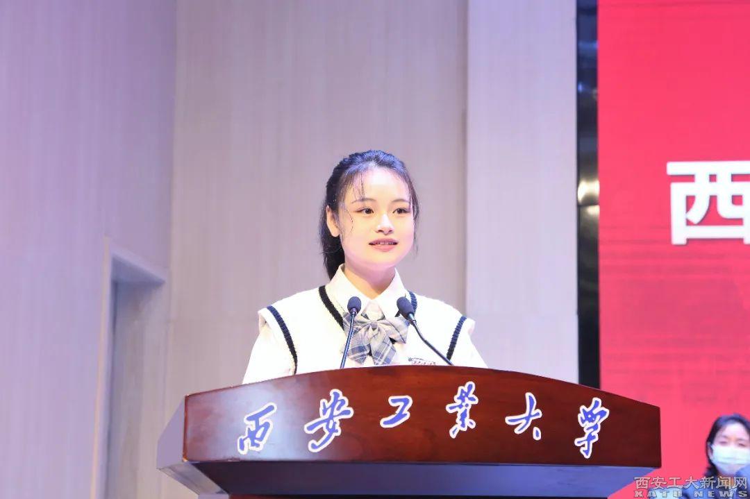 研究生新生代表光電工程學院王思淇同學在發言中呼吁大家一起成為仰望星空、腳踏實地的“西安工大人”。