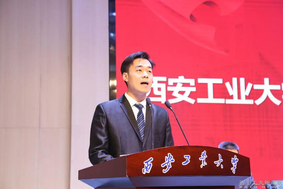 來自電子信息工程學院的教師代表師亮作了發言,他希望同學們有百折不撓的堅韌,與西安工業大學一起茁壯成長,不負韶華,青春無悔。