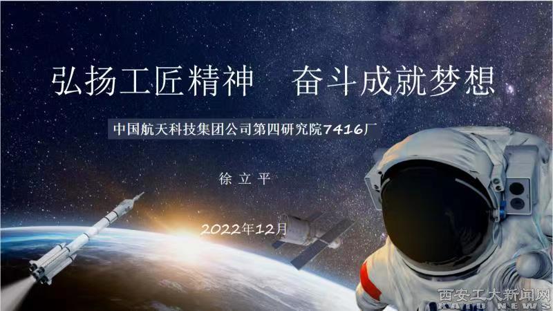 徐立平以“弘揚工匠精神 奮斗成就夢想”為主題,結合自身工作經歷,講述了獻身航天事業30余年的默默堅守與付出,用最真切的案例描述了工作崗位上的一個個兇險異常、極其艱辛的故事,深刻詮釋了航天人的犧牲、奉獻,詮釋了大國工匠執著專注、精益求精、一絲不茍、追求卓越的工匠精神,也詮釋了工匠精神所蘊含的精致精細、奉獻、堅持、創新的工作態度。他在報告中號召青年師生,要立志民族復興,不負韶華,不負時代,在青春的賽道上奮力奔跑,讓奮斗成為青春最亮麗的底色,讓人生在實現中國夢的奮進中收獲無限精彩。