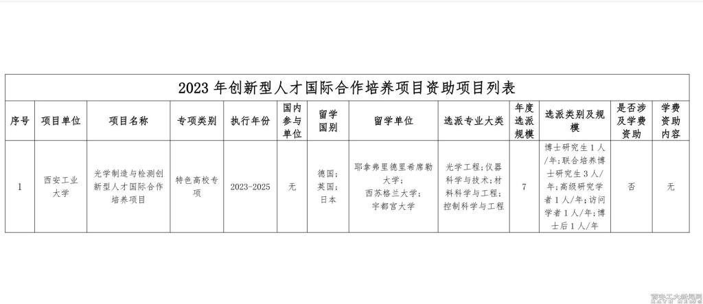 (本網訊)近日,國家留學基金委于公布了2023年創新型人才國際合作培養項目立項名單。我校劉衛國教授主持申報的“光學制造與檢測創新型人才國際合作培養項目”成功獲批。