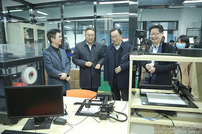 寧先圣、楊紹卿一行還參觀了我校校史館、智造創新工場、新能源科學與技術研究院、陜西省薄膜技術與光學檢測重點實驗室、陜西省特種加工重點實驗室。