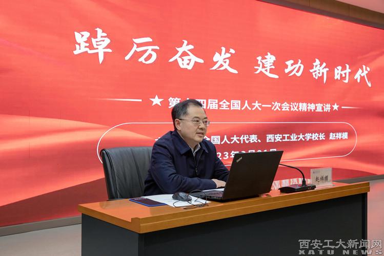 (本網(wǎng)訊)迎著催人奮進的春風,3月21日下午,第十四屆全國人大代表、西安工業(yè)大學校長趙祥模教授以《踔厲奮發(fā) 建功新時代》為題,為全校師生宣講全國兩會精神。會議由校黨委副書記梁云鶴主持。
