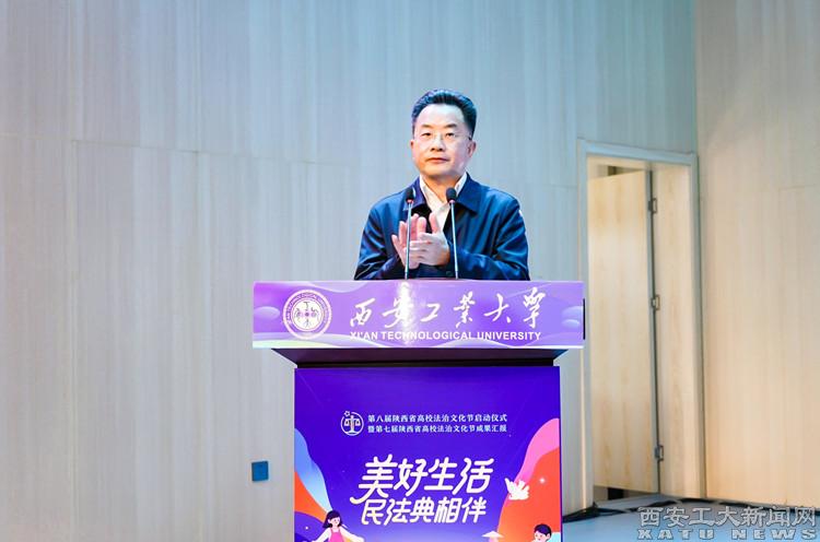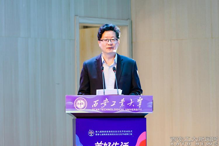 劉衛國在致辭中簡要介紹了學校有關情況。他指出,西安工業大學在近70年的發展歷程中,始終堅持把依法治校作為推進治理體系和治理能力現代化的重要途徑,把依法治教、依法治校貫穿于教書育人、事業發展的全過程。他表示,學校將以本屆法治文化節的舉辦為契機,大力弘揚遵法、知法、守法的良好風尚,積極營造干部依法管理、教師依法執教、學生遵紀守法的良好氛圍,為弘揚法治精神、建設法治校園、創建更高水平法治陜西作出新的更大貢獻。