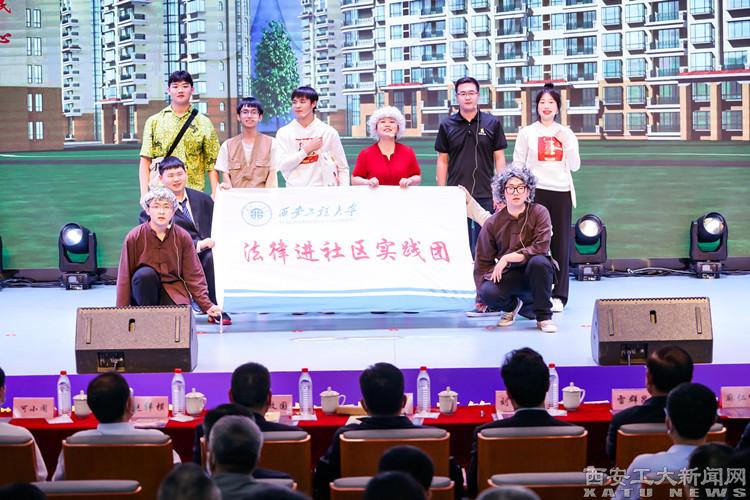 與會人員欣賞了西安工業大學學生表演的舞蹈《黨旗飄揚的方向》和詩歌朗誦《新時代的中國民法典》、西安工程大學師生表演的小品《法律進社區之步步驚心》、西安工業大學附屬小學同學表演的歌舞《祖國有我》,觀看了陜西省高校法治文化節部署片。