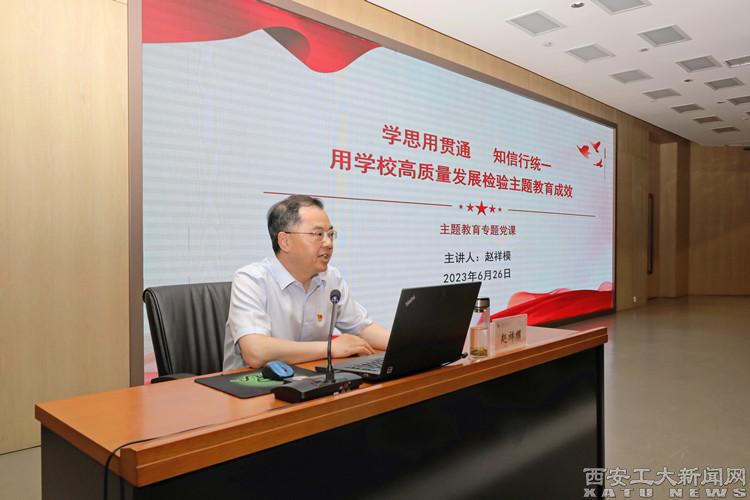 (本網訊)為持續推動主題教育走深走實、見行見效,6月26日,校長趙祥模以“學思用貫通、知信行統一,用學校高質量發展檢驗主題教育成效”為題,為青年教師及黨辦校辦支部黨員講授專題黨課。專題黨課由校黨委副書記梁云鶴主持。省委主題教育第十三巡回指導組成員冀國清蒞臨現場旁聽指導。