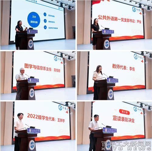 會議第一階段,大家共同觀看了工作總結視頻,回顧了新生院2022學年的人才培養工作歷程。新生院院長劉改琳從新生院基本情況、黨建工作、教學工作、學生教育管理工作、取得的成績、存在的問題和不足、下一步工作思路和舉措等七個方面進行匯報,全面總結了過去一年中人才培養工作各項成效。公共外語第一黨支部書記蘆俊、圖學與信息系主任高佳宏、數學系教師代表李倩、2022級學生代表王新宇分別進行交流發言。新生院黨委書記姬洪波宣讀學院2022年學風建設工作表彰決定,校領導為獲獎代表頒發了榮譽證書。