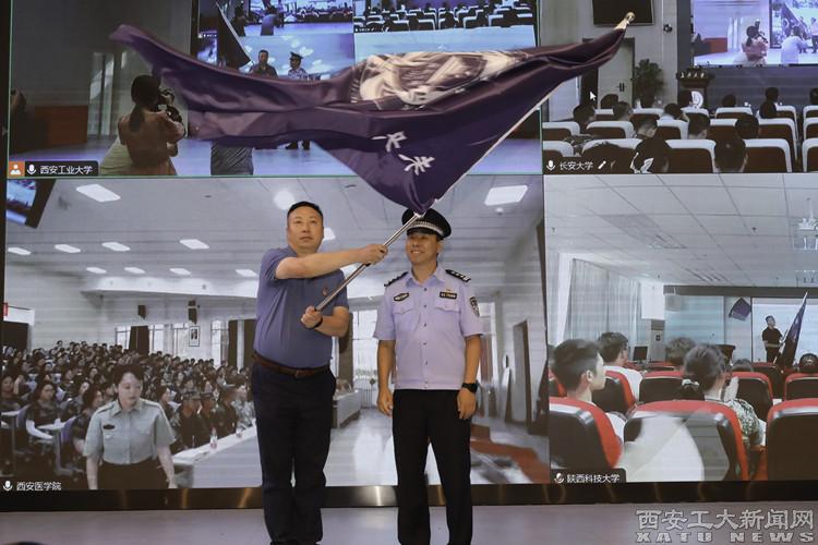 未央區委政法委、西安市公安局考核辦、平安辦、新聞中心和未央分局相關負責人向四所高校的代表頒發授予“高校反詐聯盟”牌匾和“反詐先鋒隊”旗幟。與此同時,主會場以視頻方式連線長安大學、陜西科技大學和西安醫學院三處分會場,分局草灘派出所、漢城派出所負責同志在分會場向校方代表進行線上聯動授旗。這標志著由未央分局以及轄區四所高校共同組建的反詐聯盟和反詐先鋒隊正式成立。這不僅是未央分局深化“警校共治”的創新之舉,更是打開反詐宣傳工作的新局面。
