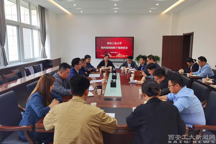 (本網訊)10月10日,我校在未央校區召開校內雙向掛職干部座談會。校黨委書記劉衛國、校黨委副書記梁云鶴出席并講話。會議由黨委組織部部長梁閃慧主持。