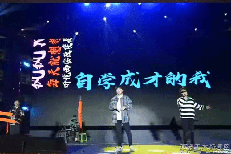 古典舞《一條大河》舞動青春,綻放絢麗光彩,彰顯著青年學生的文化自信。西安將成為許多同學的第二故鄉,著名音樂唱作人程渤智一行為全校師生帶來了《西安人的歌》等代表歌曲串燒,全場同唱,將晚會推向高潮。