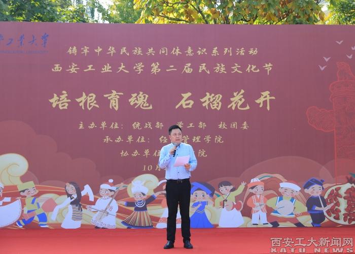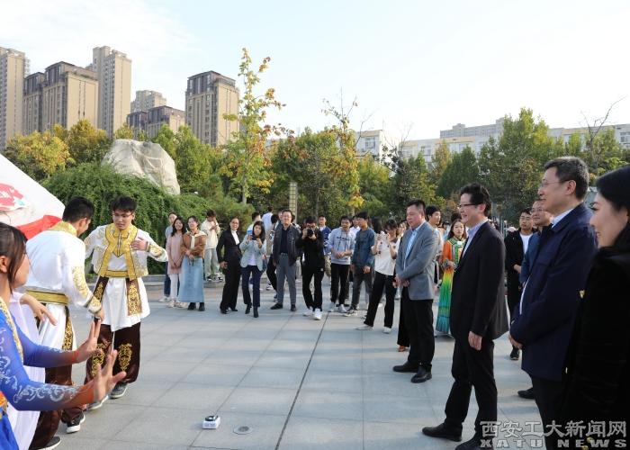 (本網訊)金秋的西工校園斑駁多彩,民族團結之花璀璨綻放。10月25日下午,西安工業大學第二屆民族文化節啟動儀式在未央校區博苑廣場舉行,校黨委書記劉衛國,校黨委副書記梁云鶴,校黨委副書記、紀委書記、駐校監察專員王發合,校黨委副書記馬福,副校長劉發林、張群出席。