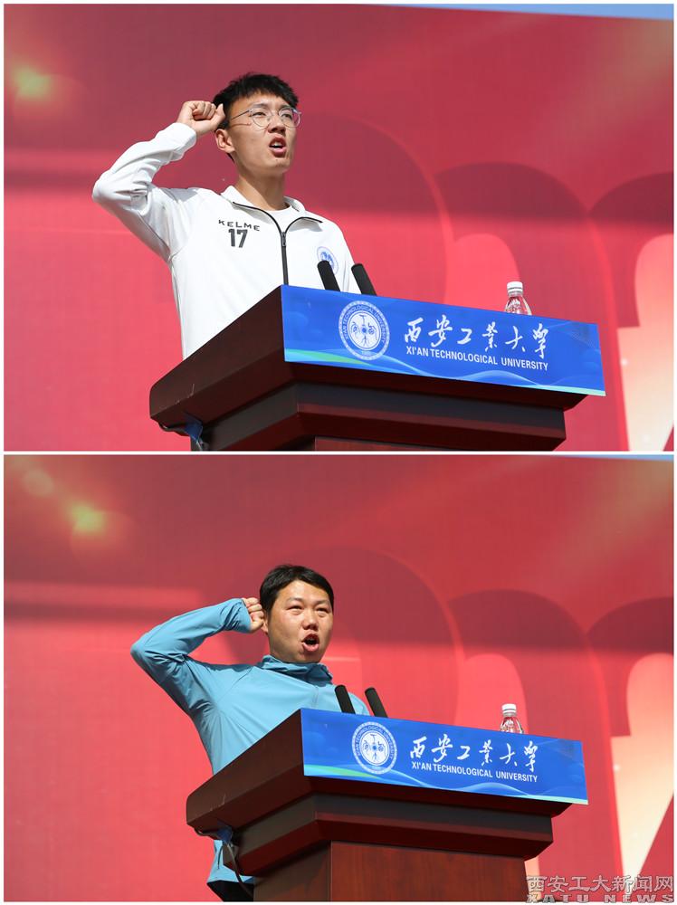 光電工程學院楊欣怡代表全體運動員宣誓。新生院公共體育系教師楊沛代表全體裁判員宣誓。