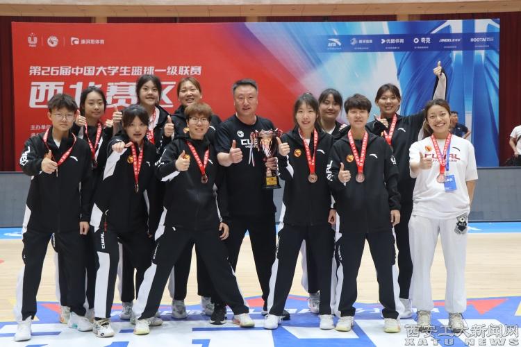 本次比賽,我校女籃經過半年多的刻苦訓練,在指導老師劉鵬的帶領下,全體隊員精誠合作、不畏艱險,戰勝各種困難,以八天七戰六勝一負的成績奪得西北賽區女籃季軍,順利進軍全國24強。