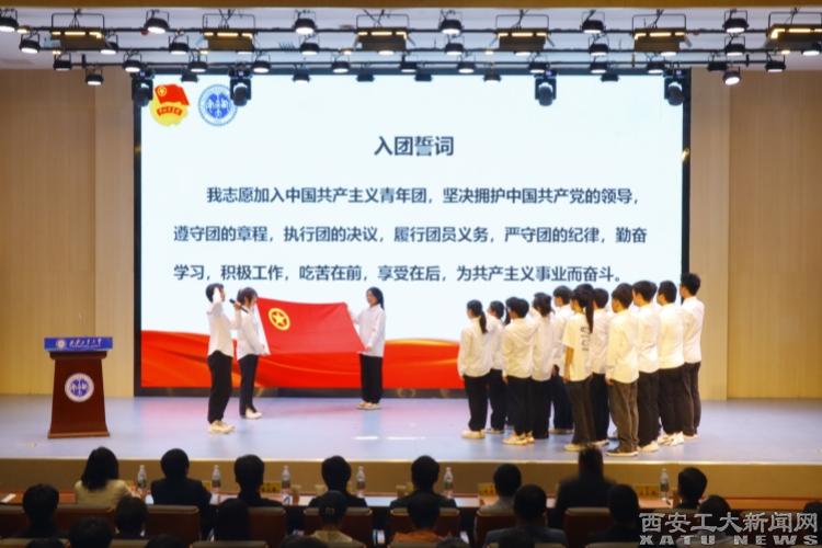 表彰會上,新團員代表面向團旗,舉起右拳,莊嚴宣誓,用鏗鏘有力的誓言表達了成為一名共青團員的責任與擔當。