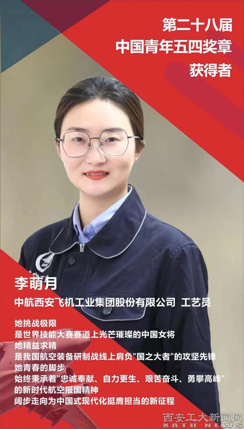 李萌月是我校機電工程學院2014級校友。2018年07月入職中航工業西飛系統件液壓附件工藝組;2019年11月參加第46屆世界技能大賽陜西省選拔賽,獲得第一名;2020年12月代表陜西省參加中華人民共和國第一屆職業技能大賽,獲得銀牌,進入國家隊。入職六年期間,李萌月始終把“目標”刻在心上,把“拼搏”寫進青春,把“擔當”融入工作,先后獲得“全國優秀共青團員”“全國巾幗建功標兵”“全國技術能手”“陜西省五一巾幗標兵”等稱號。她立足崗位,不斷進取,精益技術,奮楫求真,在航空裝備研制的戰線上,秉承新時代航空報國精神,以赤誠奮斗的姿態書寫著絢麗的青春華章。她是陜西廣大軍工青年的優秀代表,也是全體西工學子的榜樣。