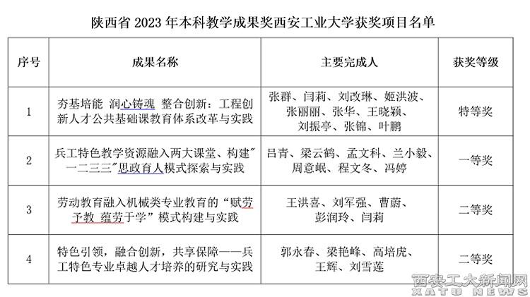 (本網訊)近日,陜西省人民政府辦公廳發布了《關于表彰2023年高等教育教學成果獎獲獎項目的通報》(陜政辦函〔2024〕104號),我校4項本科教學成果獲獎,其中特等獎1項,一等獎1項,二等獎2項。