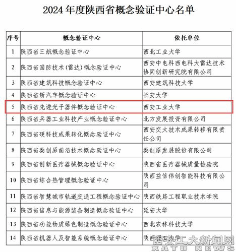 (本網訊)近日,陜西省科技廳公布了2024年度概念驗證中心和中試基地認定名單,經過前期推薦申報、專家評審、實地考察、研究審定等環節,最終認定了首批14家陜西省概念驗證中心和14家陜西省中試基地,我校“先進光子器件概念驗證中心”成功入選概念驗證中心建設名單。