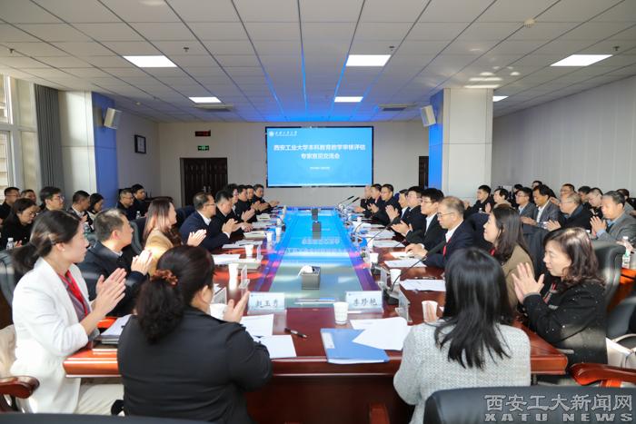 (本網訊)11月20日下午,西安工業大學本科教育教學審核評估專家意見交流會在未央校區圖書館三樓會議室召開。教育部審核評估專家組組長、大連理工大學原副校長李志義,西安理工大學副校長黑新宏、陜西科技大學副校長蒲永平、西安科技大學原副校長李樹剛、內蒙古科技大學副校長陳明、沈陽師范大學副校長佟玉平、廣西大學教務處處長耿葵花、西北大學高教研究中心主任姚聰莉等專家組成員,陜西省委教育工委委員、省教育廳副廳長吳振磊,中國西部高等教育評估中心主任陸根書,西安工業大學全體校領導、各二級學院和職能部門負責人參加會議,會議由李志義主持。