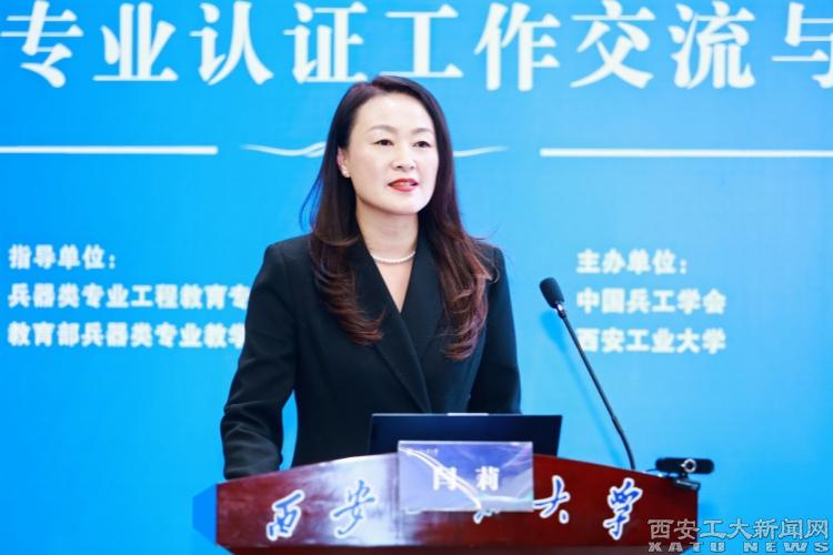 之后,我校副校長閆莉教授,結合我校專業認證工作開展情況,以《以專業認證為抓手,貫徹OBE理念,提升人才培養質量——西安工業大學的探索與實踐》為題,介紹了學校在本科專業人才培養質量方面的先進理念、實踐成果和寶貴經驗。