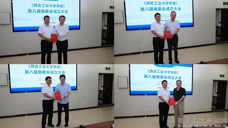 大會宣讀《西安工業大學學報》第八屆編輯委員會組成人員名單。姚堯為編委會主任和副主任、特邀編委代表頒發聘書,新聘任編委會主任陳建為第八屆新聘任編委代表頒發聘書。