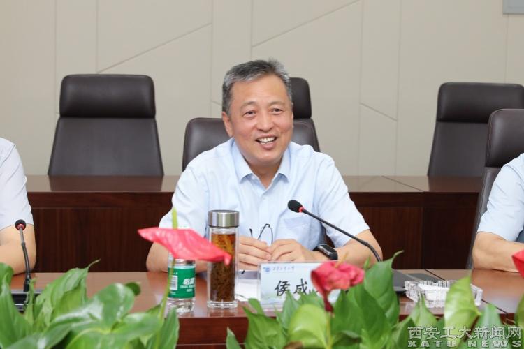 侯成義對賈大風(fēng)一行的到來表示歡迎,并從辦學(xué)歷史、人才培養(yǎng)、科技創(chuàng)新等方面介紹了學(xué)校的基本情況。他表示,西安工業(yè)大學(xué)有兵工底色、軍工情懷,注重學(xué)生動(dòng)手能力、實(shí)踐能力、專業(yè)能力,培養(yǎng)了一批又一批留得住、用得上、干得好的人才。他希望,以此次交流為契機(jī),在學(xué)科建設(shè)、科學(xué)研究、人才培養(yǎng)等方面,根據(jù)雙方需求,進(jìn)一步開展深度合作,常來常往、越走越親、越走越近,跟上國家需求,為解決“卡脖子”問題貢獻(xiàn)更大力量。