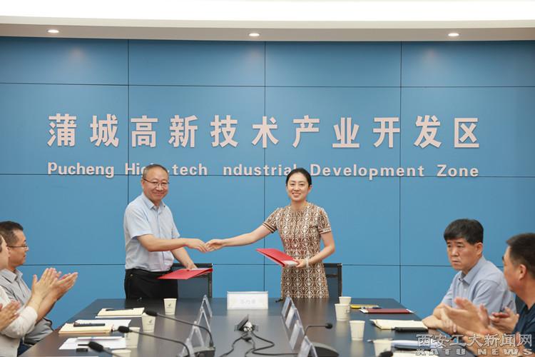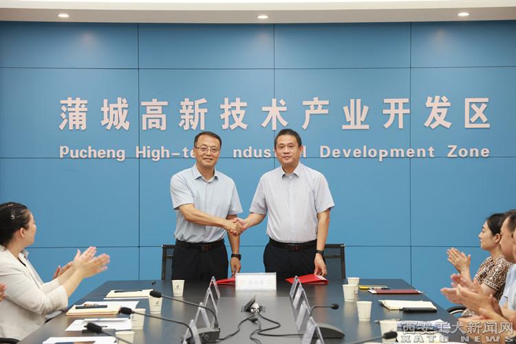 薛斌全面介紹了蒲城縣及渭南經開區的經濟社會發展概況、產業布局優勢以及未來發展規劃。他表示,蒲城縣正處于產業優化和轉型升級的關鍵時期,將錨定發展新質生產力的戰略目標,全力營造優質環境,期待與學校在科學研究、人才培養、成果轉化等方面深入合作。