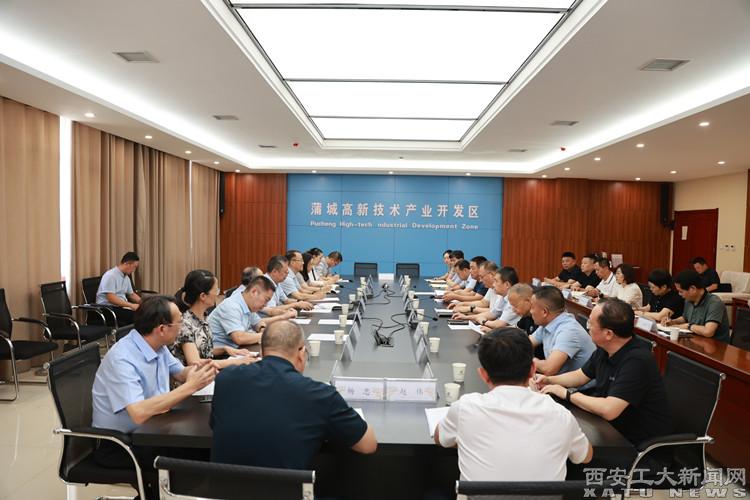 蒲城縣政府辦、發改局、工信局、人社局、教體局、經合中心、科技中心,經開區新材料辦、臨空辦、食品辦、高端制造辦等主要負責同志出席了活動。學校黨辦校辦、科學技術研究院、黨委研究生工作部、就業處、資產公司、校友總會辦公室、材化學院、交叉創新研究院等主要負責人參加了調研。