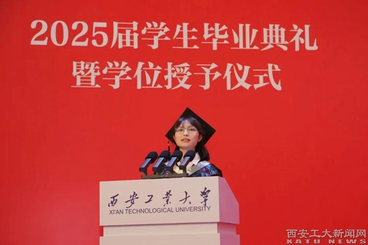 本科畢業(yè)生代表贠欣欣同學(xué)發(fā)言:未來(lái),無(wú)論是在基層一線踐行服務(wù)初心,還是在科技創(chuàng)新中勇攀高峰,亦或在國(guó)際舞臺(tái)發(fā)出中國(guó)聲音,我們都將以西工精神為帆,以青春使命為舵,既有“會(huì)當(dāng)水擊三千里”的豪邁,更守“一片冰心在玉壺”的純粹,讓青春在時(shí)代的星河中閃耀母校的獨(dú)特光芒。