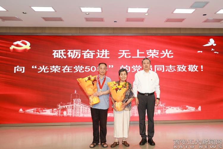 大會在莊嚴的國歌聲中拉開帷幕,校黨委書記侯成義為“光榮在黨50年”紀念章獲得者代表頒授紀念章。今年我校共有6位老黨員獲此殊榮。