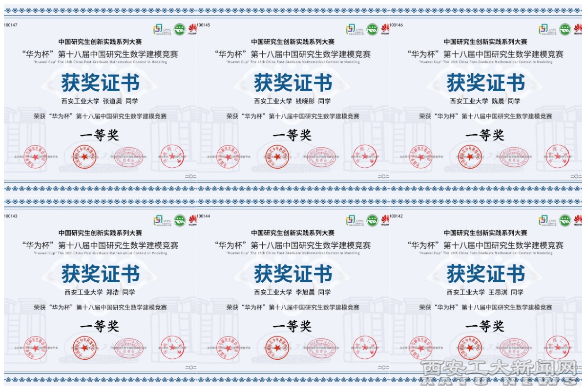 (本網訊)4月23日,“華為杯”第十八屆中國研究生數學建模競賽頒獎大會在線上舉行,我校研究生榮獲國家級一等獎2項、二等獎5項、三等獎10項,參賽隊伍一等獎獲獎比例遠高于大賽平均獲獎比例,一等獎獲獎數位居陜西高校第3位。