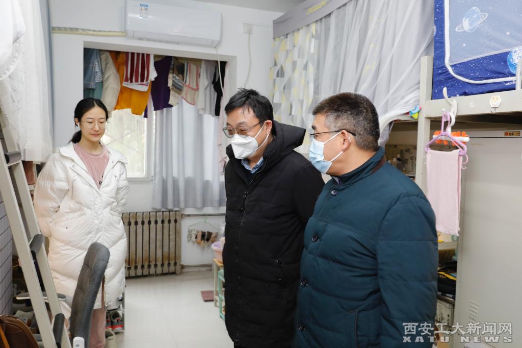 (本網訊)按照學校教學工作安排,自2022年1月3日起,我校全面開始新學期的線上教學工作。為確保在疫情防控封閉管理期間教學工作有序開展,1月5日,省教育廳駐西安工業(yè)大學疫情防控工作專班負責人李鵬飛一行前往學生公寓對線上教學工作及學生在宿舍的學習生活進行督導檢查。副校長祁玉龍隨同檢查。