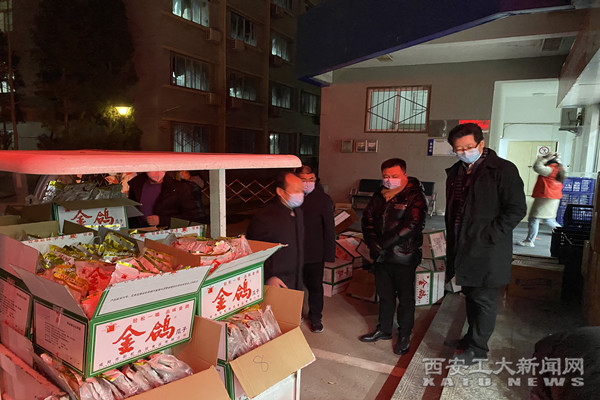 (本網訊)青青園中葵,朝露待日晞,陽春布德澤,萬物生光輝。為了讓同學們度過一個喜慶、安樂、祥和的元旦,12月31日,學校組織開展了“共同抗疫,送給2022的你,元旦快樂”主題關懷活動,為全校21000余名各級各類學生送上了新年快樂禮包。禮包內有同學們喜歡吃的瓜子、奶糖、水果等。黨委書記劉衛國,黨委副書記王軍周、梁云鶴,副校長祁玉龍等在未央校區現場查看了禮包準備和發放情況,并深入學生宿舍看望慰問學生。