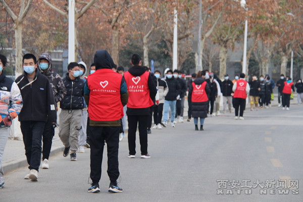 國(guó)旗護(hù)衛(wèi)隊(duì),6點(diǎn)15分接到核酸檢測(cè)時(shí)間調(diào)整通知,7:30準(zhǔn)時(shí)到達(dá)集結(jié)地點(diǎn),隊(duì)伍整齊劃一、口號(hào)響亮,在寒風(fēng)中堅(jiān)持值守近10個(gè)小時(shí),全體核酸檢測(cè)志愿者與國(guó)護(hù)隊(duì)同學(xué)相互配合,完成了全部13棟公寓,20000多人的核酸檢測(cè)引導(dǎo)工作任務(wù),臉和手凍得通紅,腳站麻了,跺一跺繼續(xù)工作,身姿依然挺拔,笑容一直浮現(xiàn)在臉上,沒(méi)有一個(gè)人掉隊(duì),沒(méi)有一個(gè)人鬧情緒,更沒(méi)有一個(gè)人當(dāng)逃兵,有同學(xué)因低血糖而摔倒、有被同學(xué)抱怨的……但是大家的笑容和熱情不減,哪里需要就出現(xiàn)在哪里,體現(xiàn)了極強(qiáng)的紀(jì)律性和戰(zhàn)斗力,這就是西安工大學(xué)子的風(fēng)采,也是西安工大兵工精神的最生動(dòng)體現(xiàn),大家用自己的實(shí)際行動(dòng)來(lái)保護(hù)我們的家人,再次感謝國(guó)護(hù)隊(duì)和今天所有的核酸檢測(cè)志愿者同學(xué)們,學(xué)校給予你們很高的評(píng)價(jià),全體師生一定會(huì)在這個(gè)特殊的時(shí)期記住你們的,向你們致敬!你們用實(shí)際行動(dòng)為五星紅旗增添了一抹紅色!