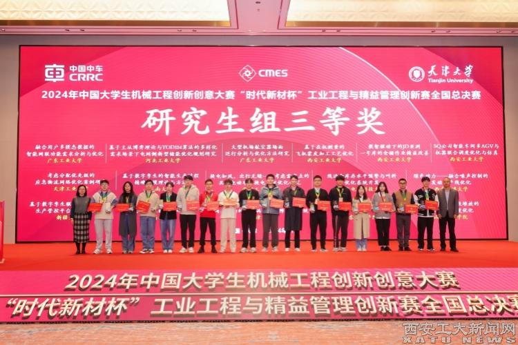 (本網訊)11月2-3日,2024年中國大學生機械工程創新創意大賽——“時代新材杯”工業工程與精益管理創新賽決賽在天津成功落下帷幕。我校閆莉老師指導的“SQ公司智能車間多AGV與機器聯合調度優化與仿真”,高曉兵老師指導的“基于在機測量的飛機蒙皮加工工藝優化”,李雨菲老師指導的“數智驅動下的JD亞洲一號庫的倉儲作業精益改善”3個作品榮獲研究生組國家級三等獎;李軍寧老師指導的“基于數據驅動的新能源汽車軸承故障診斷系統”榮獲本科生組國家級三等獎。我校自參賽以來,成績穩步上升,不論是獲獎數目還是獲獎等級都在省內高校中名列前茅。