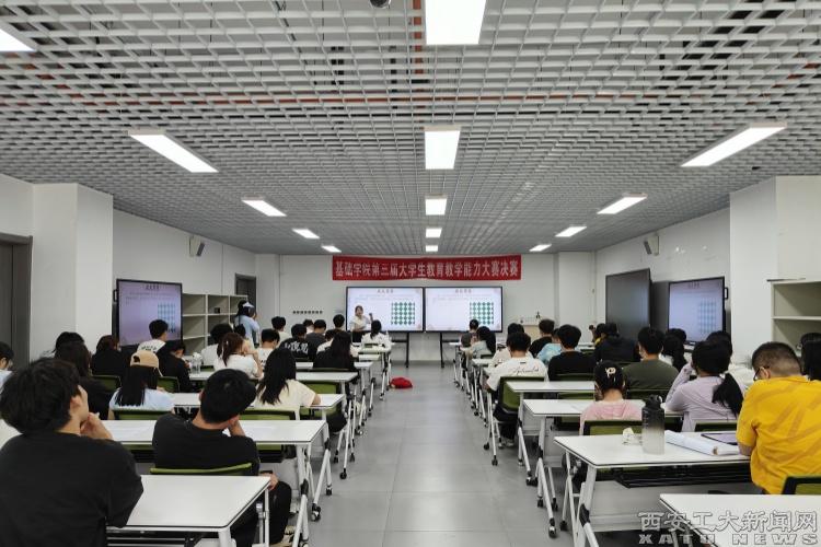 (本網訊)為深化教育教學改革,全方位提升大學生的教育教學實踐能力,夯實就業競爭力,基礎學院精心籌備并成功舉辦了第三屆大學生教育教學能力大賽。賽事吸引了200余名學子踴躍參與,經過初賽、復賽的層層選拔,10位表現優異的選手脫穎而出,晉級決賽舞臺。5月14日下午,決賽在大學生活動中心215室拉開帷幕,西安學而思的張雪歐、張文亮、禹小琴三位資深教師受邀擔任專業評委,為比賽保駕護航。