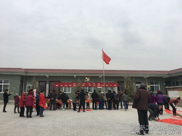 (本網訊) 1月28日,適逢中國農歷小年,西安工大中國書法學院師生一行10余人在學院黨總支書記王蘇喜教授的帶領下,走進富平縣黃窯村,舉行了“春節送福進黃窯 文化幫扶奔小康”活動,師生們以送春聯、“福”字的形式向村民們送上新春的祝福。