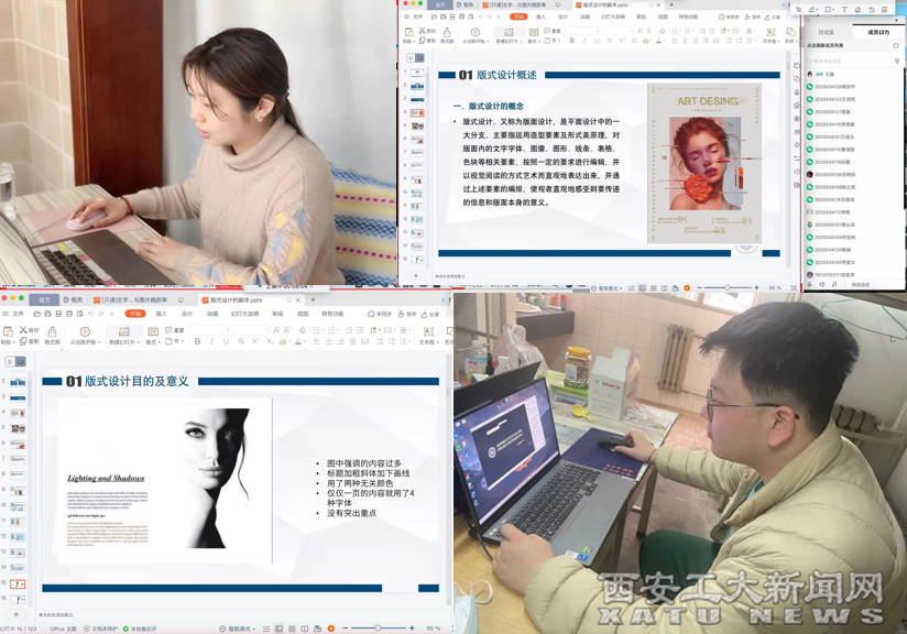 藝術與傳媒學院王晶老師在視覺傳達設計專業《版式設計》的線上教學中,采用“平臺建課+直播授課”相結合的教學模式。課前準備工作中,在學習平臺上建設了優質慕課視頻資源。線上授課過程中教學流程規范,力求網絡教學務實高效。課前提前發布學習任務,學生提前自主學習課程內容;開課前上傳本次課的學習要求,明確學習流程和學習目標,輔以問卷調查、教學案例、討論等導入課程,激發學生對本次課的學習興趣;課中通過連麥、討論區等與學生積極互動,時刻讓學生保持學習狀態,課后輔導學生鞏固課程知識,布置話題討論和隨堂測試,并及時批改評價,檢查當天學生課程知識掌握情況。通過反復強化突破重點、難點,設計多樣化的課堂教學活動,讓學生保持新鮮感和學習興趣。