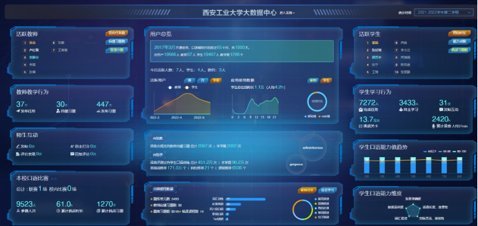一方面,學校系統(tǒng)管理員可通過特定端口查看所有數(shù)據(jù),包括使用平臺的師生數(shù)量、教師工作的詳細統(tǒng)計,教師行為、師生互動等,便于監(jiān)管部門的及時反饋與調(diào)整。依次為U校園,Welearn和Fif口語平臺。