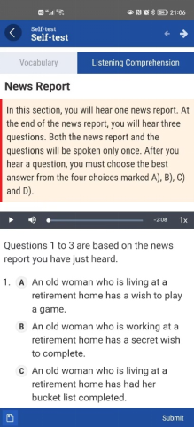 通過Welearn平臺,每個單元移動端獨享的詞匯練習和“四級題型測試(self-test)”,有查詞、有答案,抑制了學生的畏難情緒,促使他們實現(xiàn)了課后自主練習,還可以感受隨時提交、即時反饋的體驗。